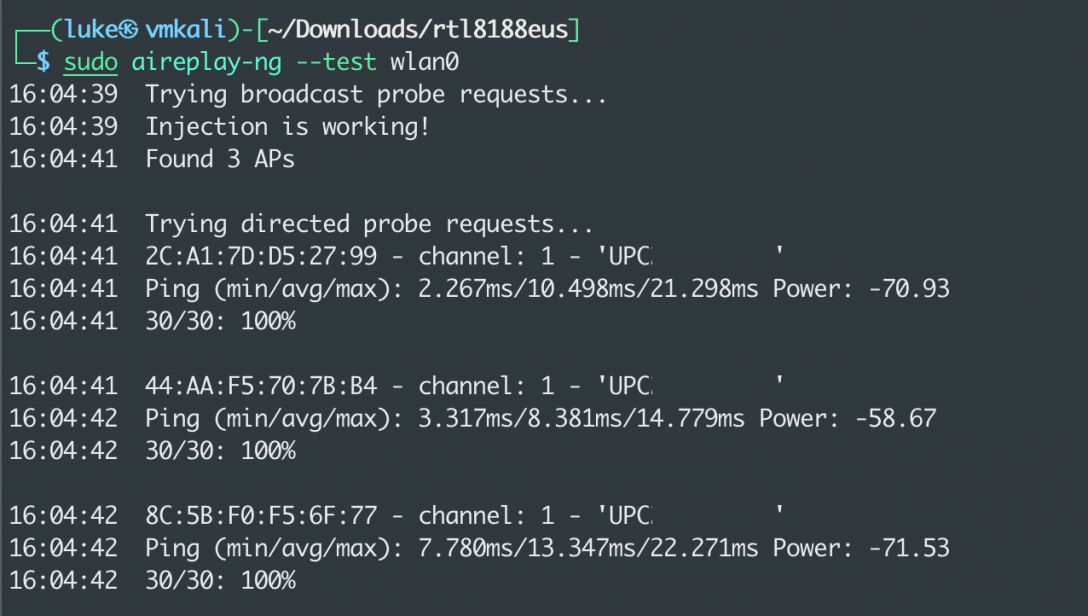 Do mojego boxu roboczego z dodałem nową kartę – TL-WN722n. Niestety po podłączeniu urządzenia USB do VM w Kali, system nie był w stanie poprawnie użyć adaptera. W przeciwieństwie do wersji V1, wersje V2 i V3 wymagają innych sterowników. W sieci można znaleźć różne poradniki (np. https://github.com/davidbombal/Kali-Linux/blob/main/TP-Link%20TL-WN722N%20adapter), jednak żaden nie pomógł – w większości przypadków kompilacja kończyła się błędem.